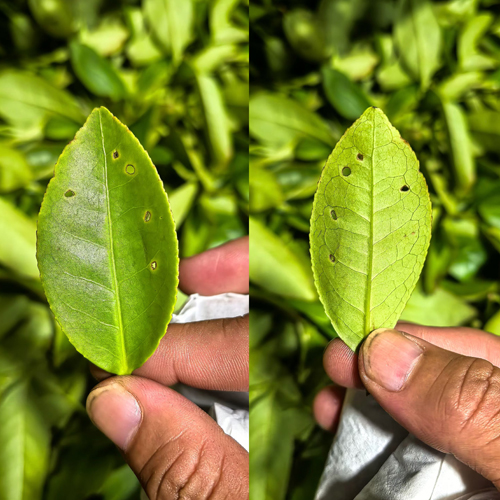 写真はその漳平水仙の茶葉です。現地の友人から送っていただきました。虫食いの後がかなり多く、無農薬が徹底されていることがわかります。