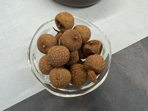 ドライライチはとても美味しく、お茶だけでなく、ワインをはじめとしたお酒にも合うのですが、日本ではなかなか見かけないドライフルーツです。店主も大好物で、中国や台湾で見つけては入手しています。